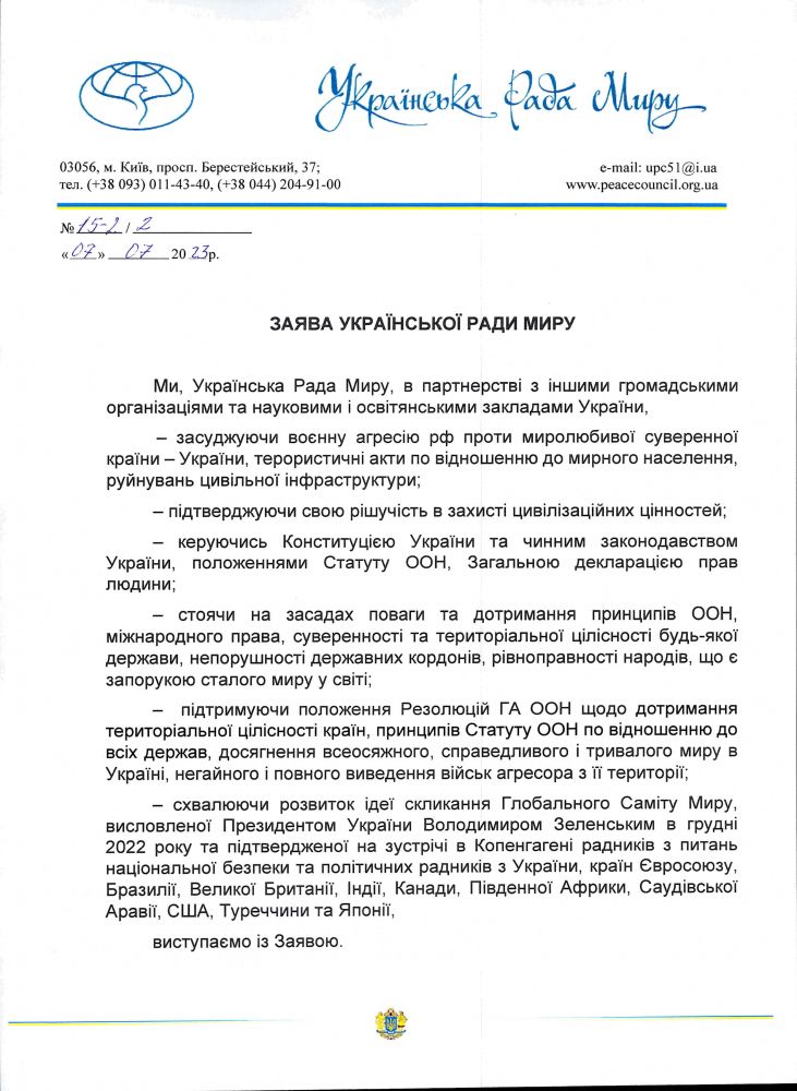 Заява Української Ради Миру 10 липня 2023, 17:58 Теги: Українська Рада Миру, НАТО, Незалежний Медіа Форум, Independent Media Forum, IMF,www.mediaforum.news Автор: uacenter.media